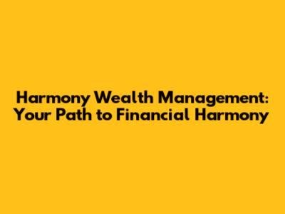 Harmony Wealth Management: Your Path To Financial Harmony