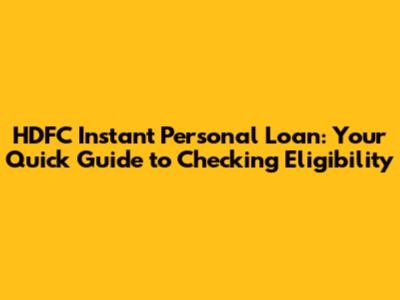 HDFC Instant Personal Loan: Quick Check & Guide