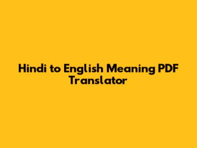 Hindi To English Meaning PDF Translator