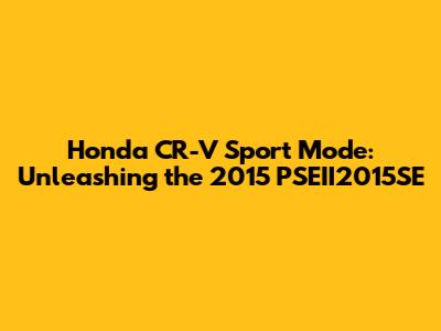 By following the tips and troubleshooting advice in this guide, you can keep your 2015 Honda CR-V PSEII2015SE running smoothly and enjoy the benefits of sport mode whenever you need it. Happy driving!
