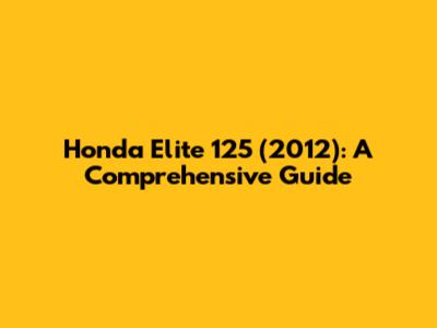 Honda Elite 125 (2012): A Comprehensive Guide