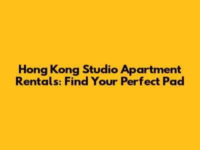 Hong Kong Studio Apartment Rentals: Find Your Perfect Pad