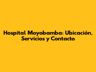 ¡Hola, Moyobamba! Tu Guía Esencial para el Hospital