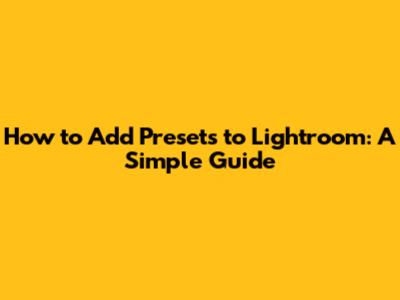 How To Add Presets To Lightroom: A Simple Guide