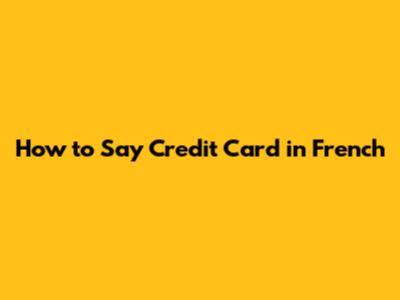 How To Say Credit Card In French