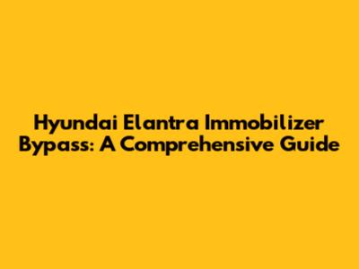 Hyundai Elantra Immobilizer Bypass: A Comprehensive Guide