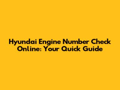 Hyundai Engine Number Check: Your Quick Guide