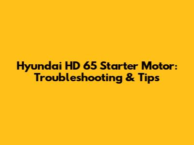 Hyundai HD 65 Starter Motor: Troubleshooting & Tips