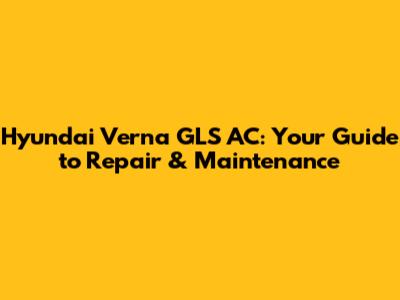 Hyundai Verna GLS AC: Your Guide To Repair & Maintenance