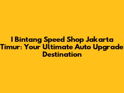 I Bintang Speed Shop: Your Jakarta Timur Auto Upgrade Hub