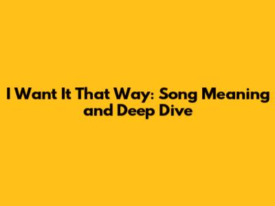 I Want It That Way: Song Meaning And Deep Dive