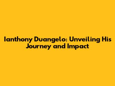 Ianthony Duangelo: Unveiling His Journey And Impact