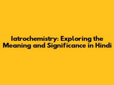 Iatrochemistry: Meaning, History, And Impact In Hindi