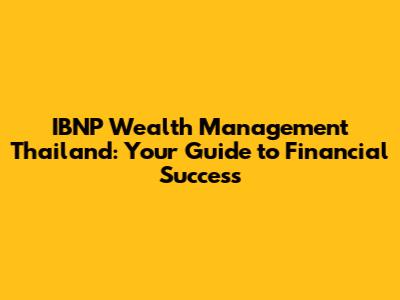 IBNP Wealth Management In Thailand: Your Comprehensive Guide