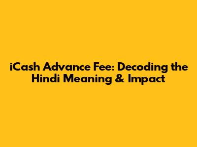 ICash Advance Fee: Hindi Meaning & What You Need To Know