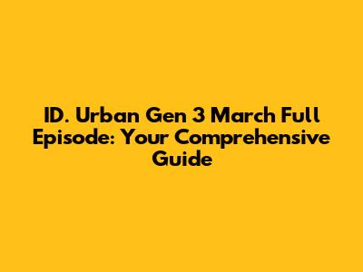 ID. Urban Gen 3 March Full Episode: Everything You Need To Know