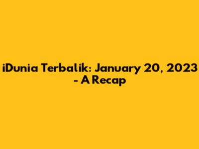 IDunia Terbalik: January 20, 2023 - A Recap