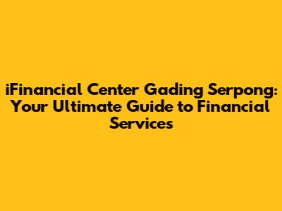 Hey guys! Welcome to the ultimate guide on iFinancial Center Gading Serpong! If you're looking for a one-stop shop for all your financial needs in the Gading Serpong area, you've come to the right place. This comprehensive guide will walk you through everything you need to know about this bustling financial hub, from the services it offers to the benefits it provides. So, grab a coffee, sit back, and let's dive into the world of iFinancial Center Gading Serpong!