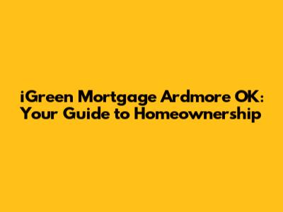 Hey there, future homeowners! Are you in the market for a mortgage in Ardmore, OK, and feeling a little lost in the sea of options? Don't worry, you're not alone! Navigating the world of mortgages can feel like learning a whole new language. But that's where we come in. This guide will break down everything you need to know about iGreen Mortgage in Ardmore, OK, helping you understand your options and make informed decisions. We'll cover what makes iGreen Mortgage a solid choice, what types of loans they offer, and how to get started on your journey to homeownership. So, grab a coffee, and let's dive into the world of Ardmore mortgages!