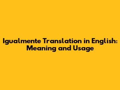 Igualmente Translation In English: Meaning And Usage