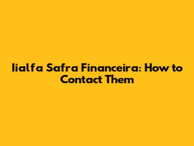 Iialfa Safra Financeira: How To Contact Them