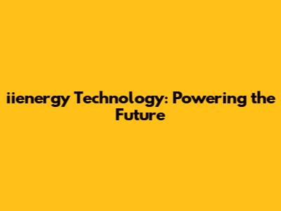 Iienergy Technology: Powering The Future