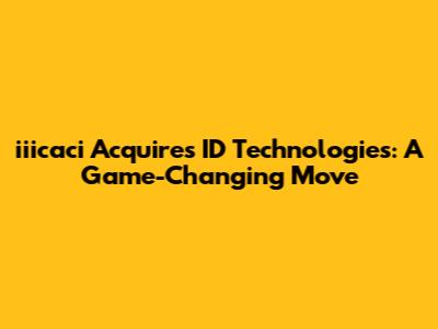 Iiicaci's Strategic Acquisition Of ID Technologies