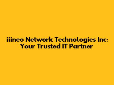 Hey there, tech enthusiasts and business owners! Let's dive into the world of iiineo Network Technologies Inc. (iiineo), a company that's making waves in the IT solutions landscape. We're going to explore what makes iiineo tick, how they can help your business thrive, and why they might just be the IT partner you've been searching for. So, buckle up, and let's get started!