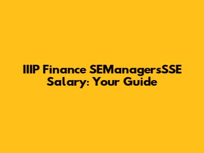 IIIP Finance SEManagersSSE Salary: Your Guide