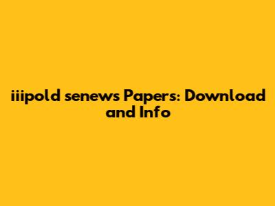 Iiipold Senews Papers: Download And Info