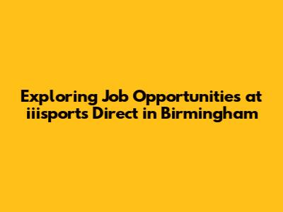 Iiisports Direct Jobs: Find Opportunities In Birmingham