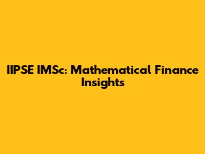 IIPSE IMSc: Mathematical Finance Insights