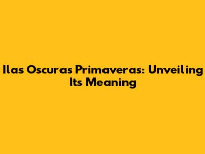 Ilas Oscuras Primaveras: Unveiling Its Meaning