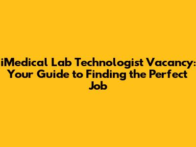 IMedical Lab Technologist Jobs: Find Your Vacancy