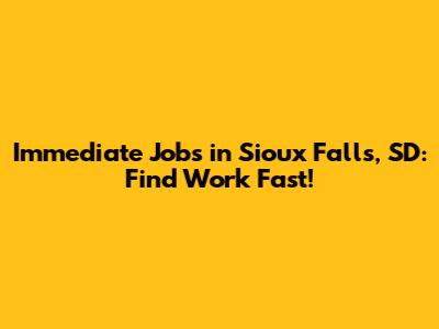 Immediate Jobs In Sioux Falls, SD: Find Work Fast!