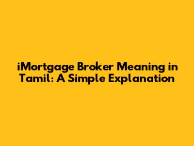 IMortgage Broker Meaning In Tamil: A Simple Explanation