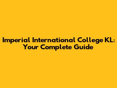Imperial International College KL: Your Complete Guide