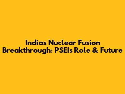 India's Nuclear Fusion Breakthrough: PSEI's Role & Future