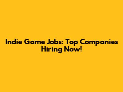 Indie Game Jobs: Top Companies Hiring Now!