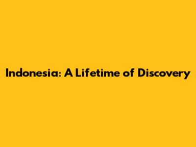 Indonesia: A Lifetime Of Discovery