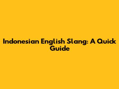 Indonesian English Slang: A Quick Guide