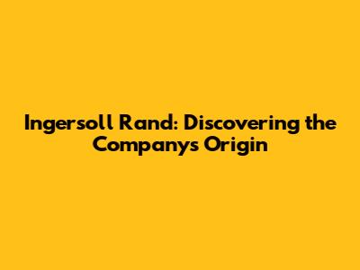 Ingersoll Rand: Discovering The Company's Origin