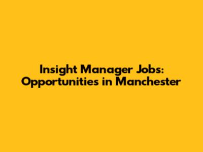 Insight Manager Jobs: Opportunities In Manchester