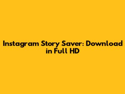 Instagram Story Saver: Download In Full HD