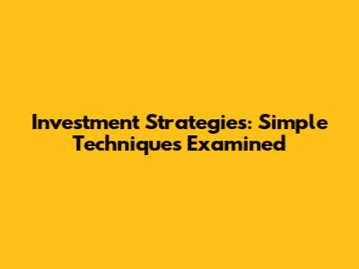 Investment Strategies: Simple Techniques Examined