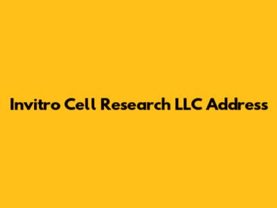 Invitro Cell Research LLC Address: Find It Here!