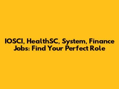IOSCI, HealthSC, System, Finance Jobs: Find Your Perfect Role