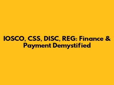 IOSCO, CSS, DISC, REG: Finance & Payment Demystified