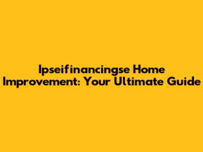 Ipseifinancingse Home Improvement: Your Guide
