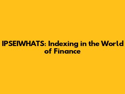 Hey finance enthusiasts and curious minds! Ever heard of IPSEIWHATS? No, it's not some secret code or a new dance craze. It's a fascinating concept that's making waves in the financial world, and today, we're diving deep to explore what it is and why it matters. Basically, we're going to break down indexing, its role in finance, and how it impacts you. So, grab your favorite beverage, get comfy, and let's unravel the mysteries of IPSEIWHATS together!